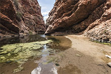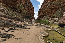 | To the west of Alice Springs is the Larapinta Trail—a world-class, long distance bush walking trail that runs 223 kilometres (139 mi) along the backbone of the range. Along the trail is Simpsons Gap, Standley Chasm, Ellery Creek Big Hole, Serpentine Gorge, Ochre Pits, Ormiston Pound, Redbank Gorge, Glen Helen Gorge, Tnorala Gosse Bluff, Palm Valley,Mount Sonder, Mount Zeil and Mount Giles. (from Wikipedia) |